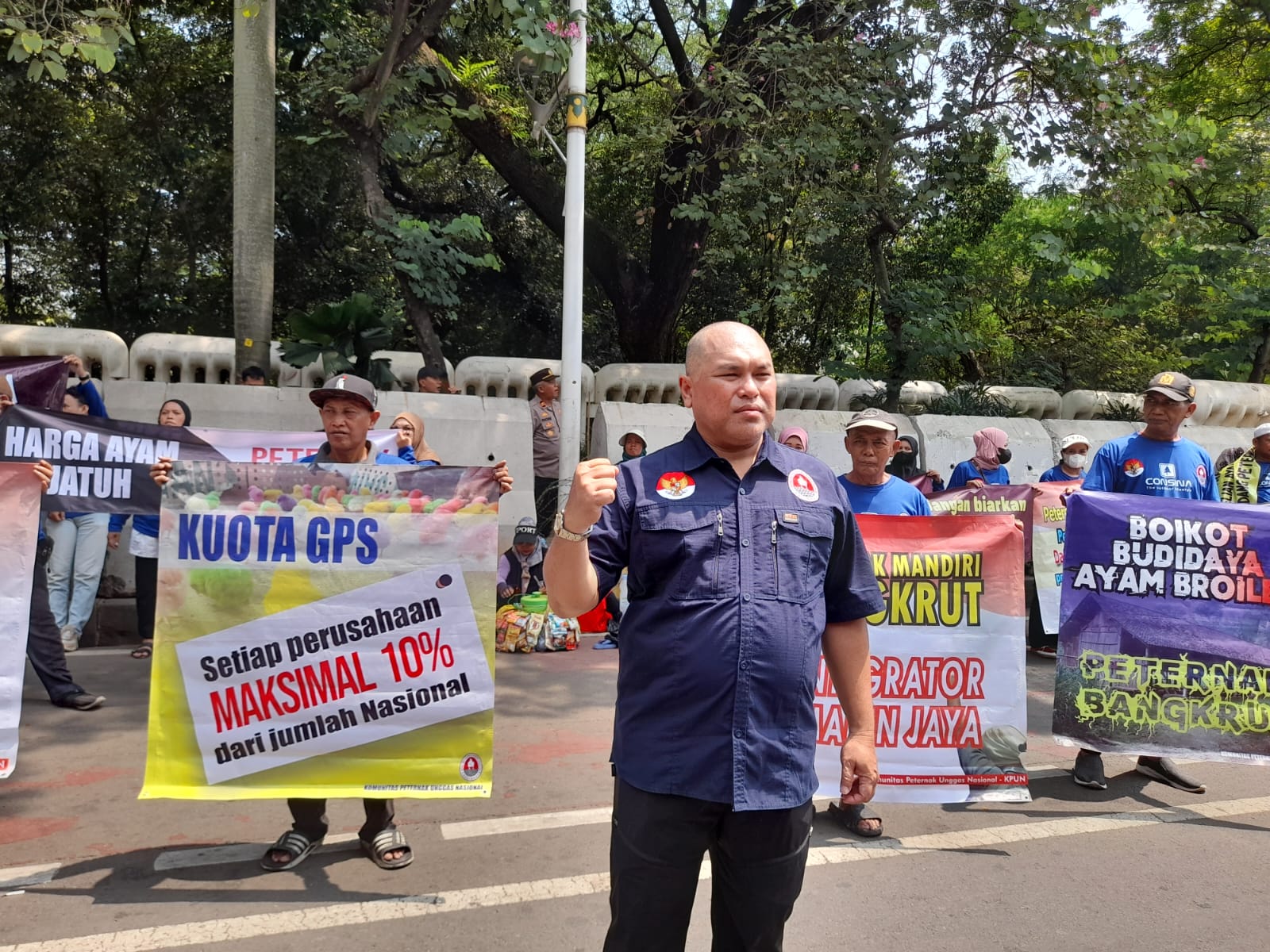 Jakarta|TribunX.id, Tiga puluh peternak ayam broiler yang tergabung di Komunitas Peternak Unggas Nasional mengelar aksi damai di dua tempat berbeda yaitu di Kawasan Patung Kuda Monas, Jakarta Pusat dan Kemenko Pangan RI, Jalan Imam Bonjol No. 61, Thamrin, Jakarta Pusat, Kamis, (05/10/2025) Pagi.