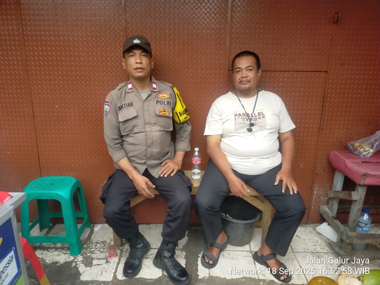 Jakarta Pusat|TribunX.id, Upaya menjaga keamanan dan ketertiban masyarakat terus dilakukan jajaran Polsek Johar Baru. Pada Senin (22/9/2025) pukul 15.40 WIB, Bhabinkamtibmas Kelurahan Galur Aiptu Baktiar melaksanakan kegiatan sambang dan cooling system di Jalan Galur Jaya RT 06/04, Kelurahan Galur, Johar Baru, Jakarta Pusat.