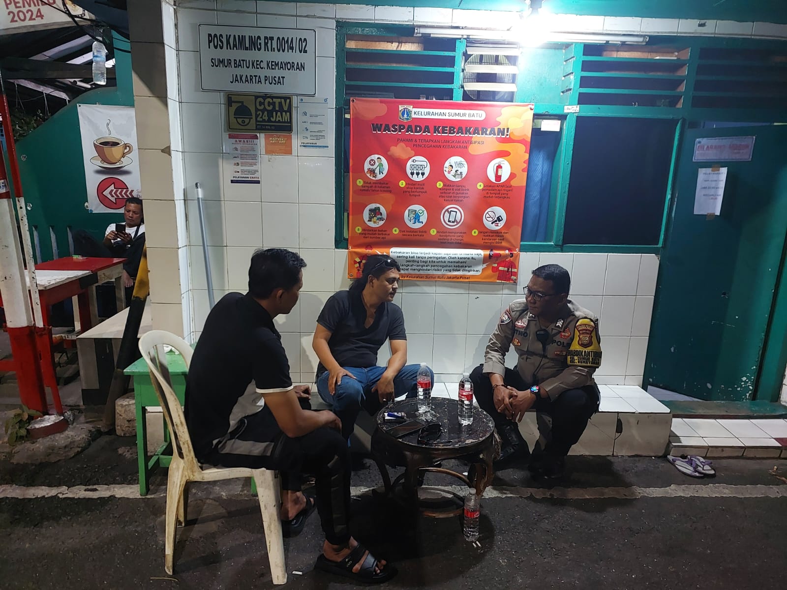 Jakarta Pusat ]]TribunX.id – Dalam upaya menjaga keamanan dan ketertiban masyarakat, jajaran Polsek Kemayoran menggelar kegiatan sambang Pos Kamling di wilayah RW 02, Kelurahan Sumur Batu, Kemayoran, Jakarta Pusat, Selasa (15/4/2025) dini hari.