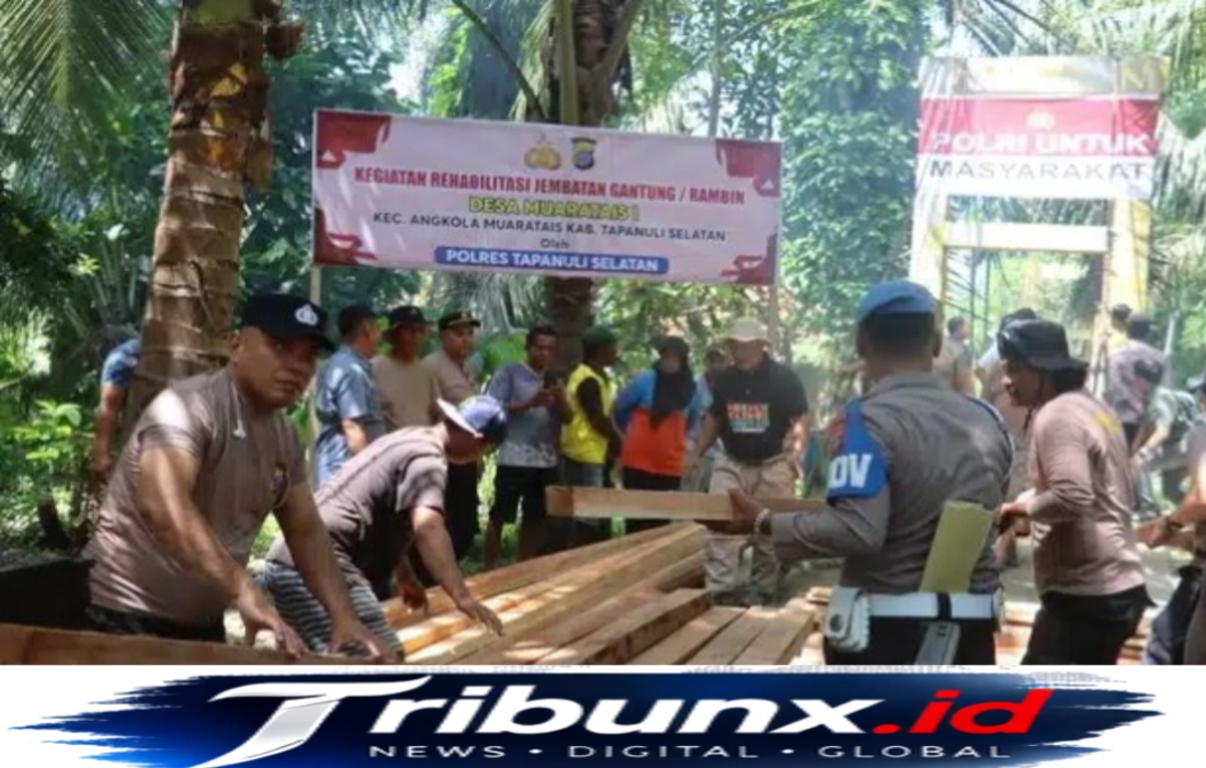 Tapanuli Selatan|TribunX.id, Sebagai bentuk kepedulian, Kepolisian Resor Tapanuli Selatan (Polres Tapsel) merehabilitasi jembatan gantung merah putih yang menjadi urat nadi aktivitas warga di Desa Muaratais I Kec. Angkola Muaratais Kabupaten Tapsel, Kamis (2/4/2026).