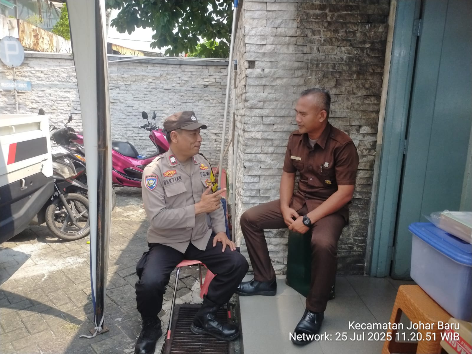 Jakarta Pusat ]TribunX.id, Dalam upaya menjaga keamanan dan ketertiban masyarakat (kamtibmas) di wilayah hukum Polsek Johar Baru, Bhabinkamtibmas Kelurahan Galur, Aiptu Baktiar Emri, melaksanakan kegiatan sambang dan cooling system di lingkungan PT Toyota Auto 2000, Jalan Letjen Suprapto RT 02 RW 04, Kelurahan Galur, Kecamatan Johar Baru, Jakarta Pusat, pada Jumat (25/7/2025) pukul 11.30 WIB.