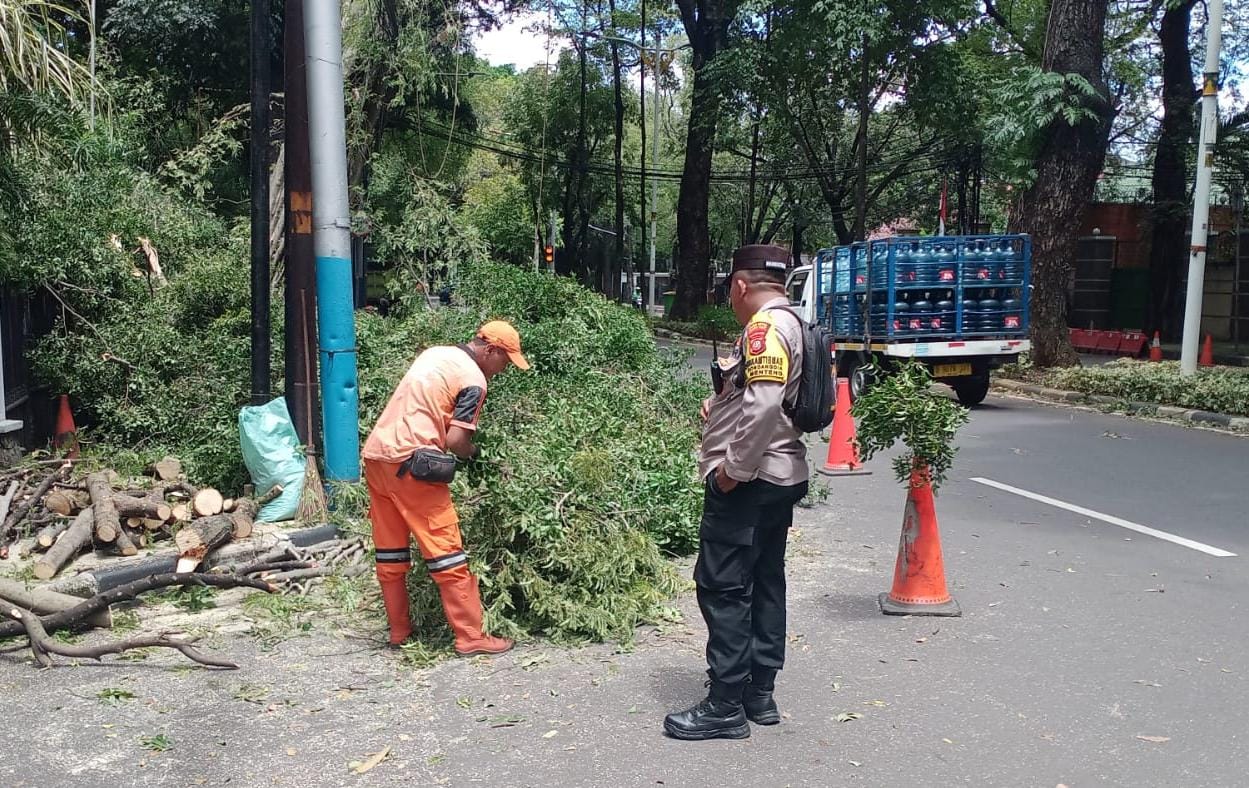 Bhabinkamtibmas Gondangdia Tindaklanjuti Laporan Warga Soal Pohon Asem Miring di Menteng