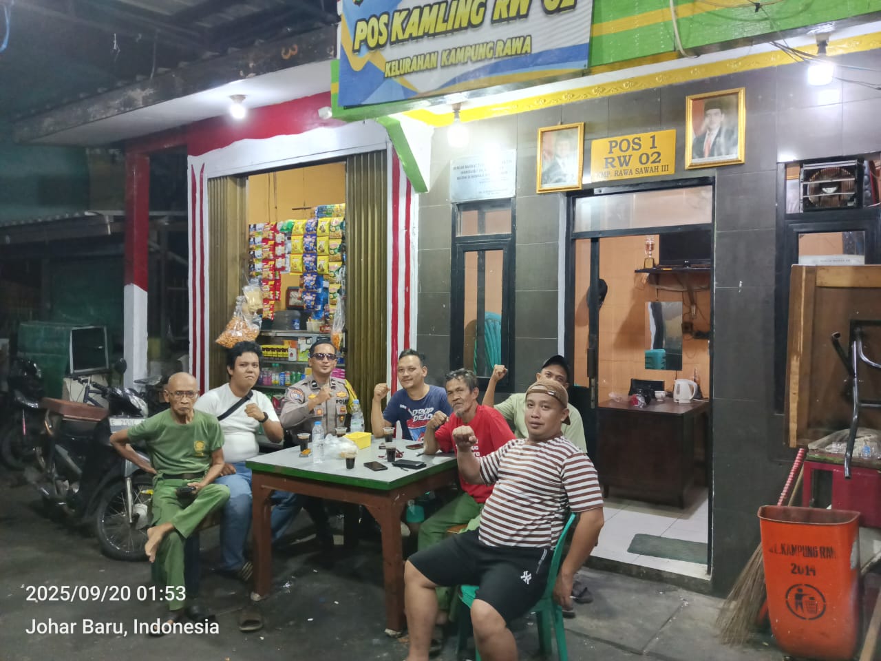 Jakarta Pusat|TribunX.id, Upaya menjaga keamanan lingkungan terus dilakukan jajaran Polsek Johar Baru. Pada Sabtu (20/9/2025) pukul 02.00 WIB, Bhabinkamtibmas Kelurahan Kampung Rawa Aipda Ikhwan melaksanakan kegiatan sambang di Pos Satkamling RT11 RW02, Jl. Rawa Sawah 3, Kelurahan Kampung Rawa, Kecamatan Johar Baru, Jakarta Pusat.