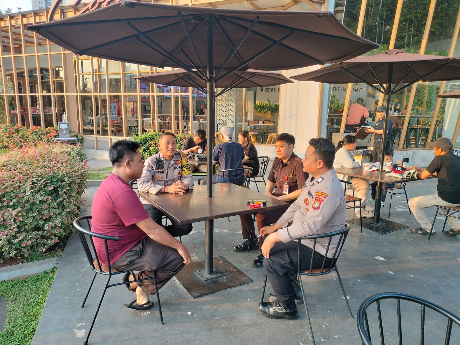 Kegiatan berlangsung di KFC Jl. HBR Motik, Kelurahan Kebon Kosong, Kemayoran, Jakarta Pusat. Bhabinkamtibmas Brigadir Yayat Ruhiyat bersama Brigadir Elka dari Patroli 1033 bertemu dengan pihak keamanan setempat, Bapak Rizki selaku security KFC Kemayoran. Pertemuan ini dilakukan sebagai bentuk silaturahmi dan koordinasi untuk mendengar masukan serta membahas potensi gangguan kamtibmas.