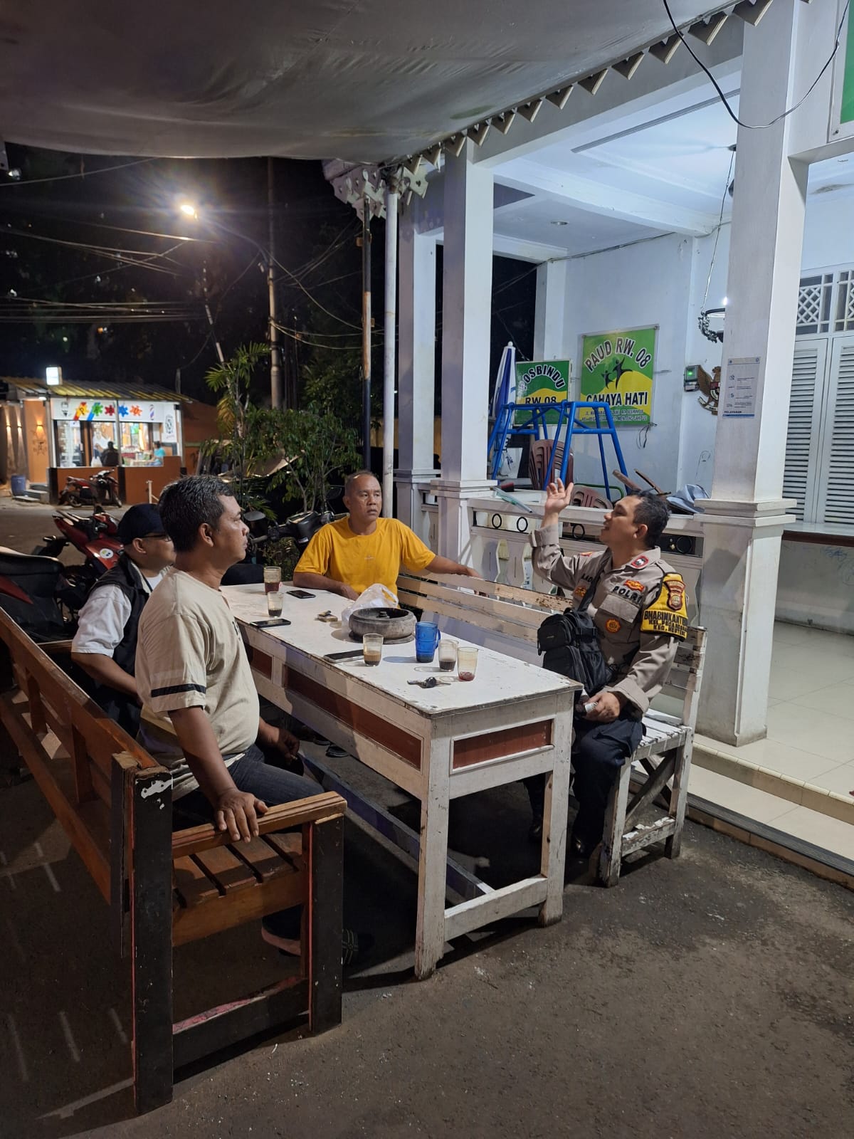 Bhabinkamtibmas Pegangsaan Sambangi Satkamling RW 08, Himbau Warga Tingkatkan Patroli Menjelang Pagi Hari