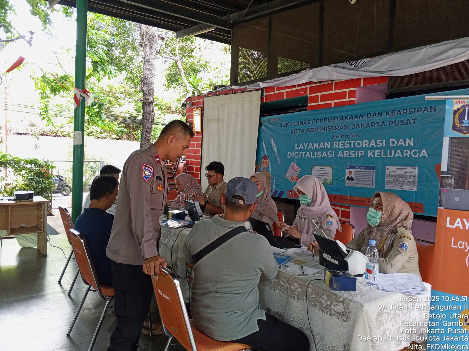 Jakarta|TribunX.id, 16 September 2025 – Bhabinkamtibmas Kelurahan Petojo Utara, Aipda Irvan Ahmad, melaksanakan kegiatan sambang sekaligus pemantauan layanan digitalisasi arsip keluarga di Jalan Pembangunan 2 RT 09/02, Kelurahan Petojo Utara, Gambir, Jakarta Pusat, Selasa (16/9/2025).
