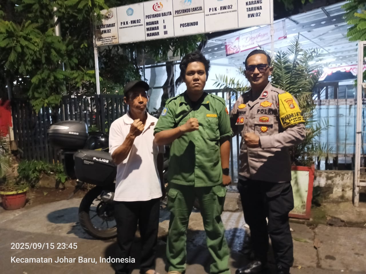 Jakarta Pusat|TribunX.id, Dalam rangka memperkuat keamanan wilayah, Bhabinkamtibmas Kelurahan Kampung Rawa, Aipda Ikhwan, melaksanakan patroli wilayah sekaligus sambang ke Pos Satkamling RW 02 yang berlokasi di Jalan Rawa Sawah 4, Kelurahan Kampung Rawa, Johar Baru, Jakarta Pusat, pada Senin (15/9/2025) pukul 23.45 WIB.