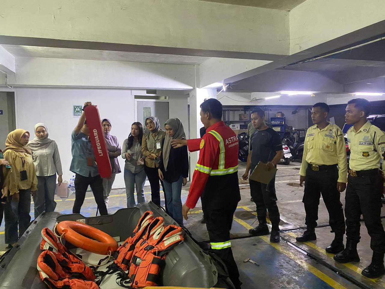 Dalam simulasi ini, Tim SAR Astra Jakarta memberikan materi praktis mulai dari teknik evakuasi mandiri saat gempa, prosedur penyelamatan dokumen penting, hingga penanganan pertama pada korban di tengah genangan banjir. Penggunaan alat penyelamatan standar profesional juga diperagakan untuk memberikan gambaran nyata proses evakuasi yang aman.