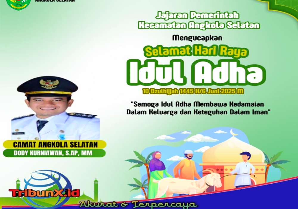 Di Moment Idul Adha 1446 Hijriah ini, Camat Angkola Selatan Dody Kurniawan S.AP. MM beserta Jajaran pemerintah kecamatan Angkola Selatan bagi umat Muslim Yang menjalankan shalat ied dan merayakan Idul Adha jatuh esok hari, 06/06/2025.
