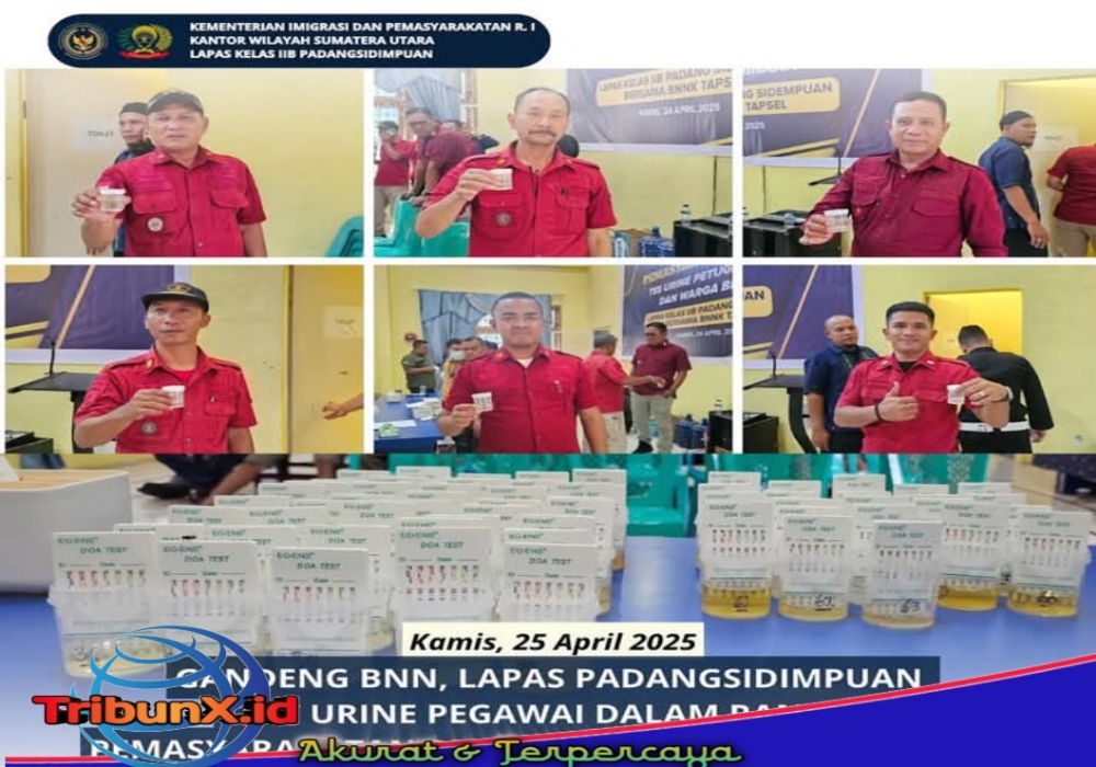 Oleh karena itu, pada hari ini, Kamis, 24 April 2025, Kalapas Kelas IIB Padangsidimpuan, melaksanakan kegiatan bersih-bersih pemasyarakatan yakni menggelar test urine pegawai dan warga binaan dengan menggandeng BNNK Tapanuli Selatan.