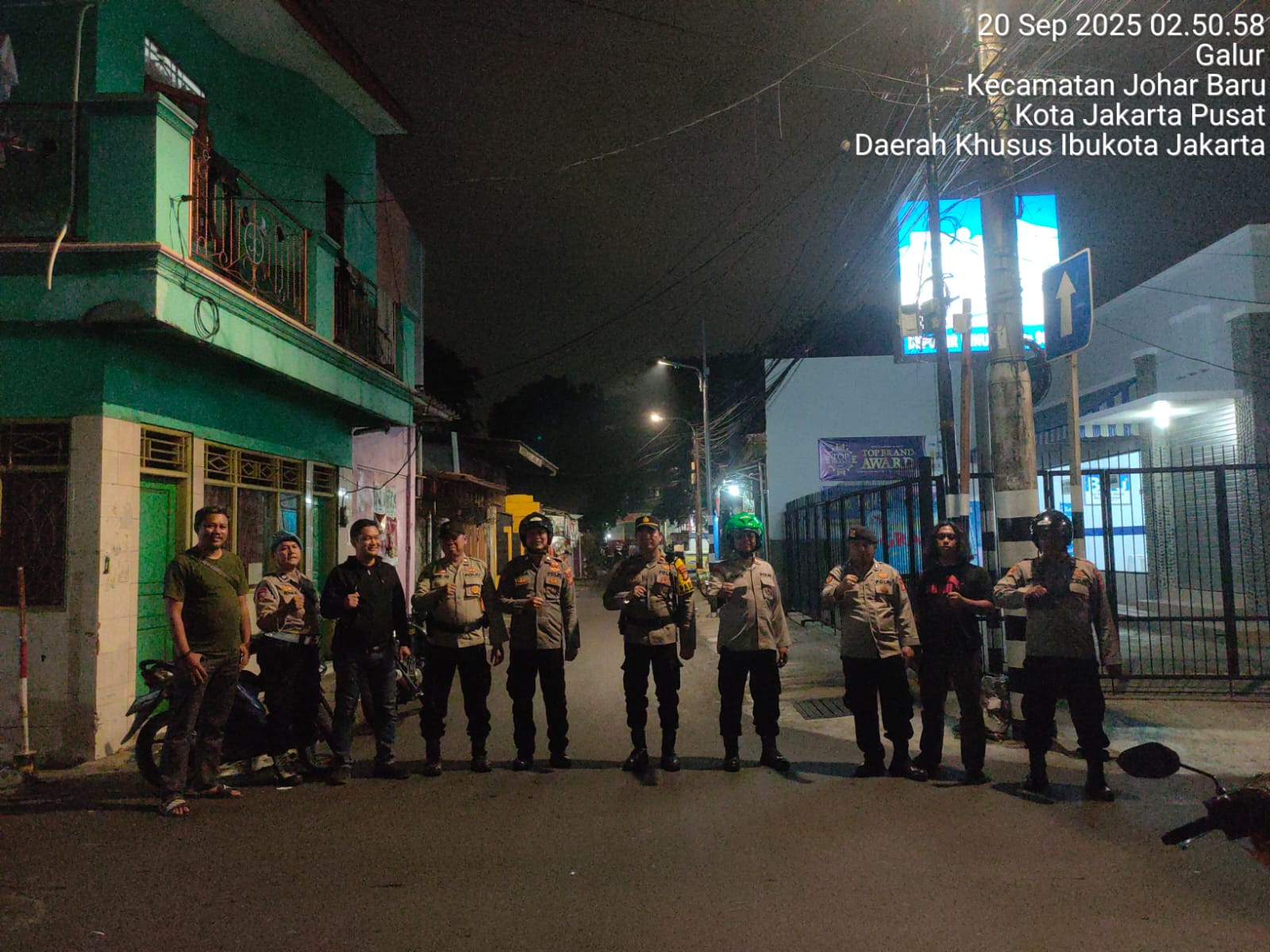 Jakarta Pusat|TribunX.id, Dalam rangka menjaga situasi kamtibmas tetap kondusif, jajaran Polsek Johar Baru melaksanakan Patroli Antisipasi Gangguan Kamtibmas pada Sabtu (20/9/2025) dini hari. Patroli dimulai pukul 02.30 WIB dengan apel yang dipimpin Wakapolsek Johar Baru AKP Aris Setiyawan, didampingi Padal Ipda Iskandar Sofyan Lubis, serta diikuti 14 personel Polsek Johar Baru.