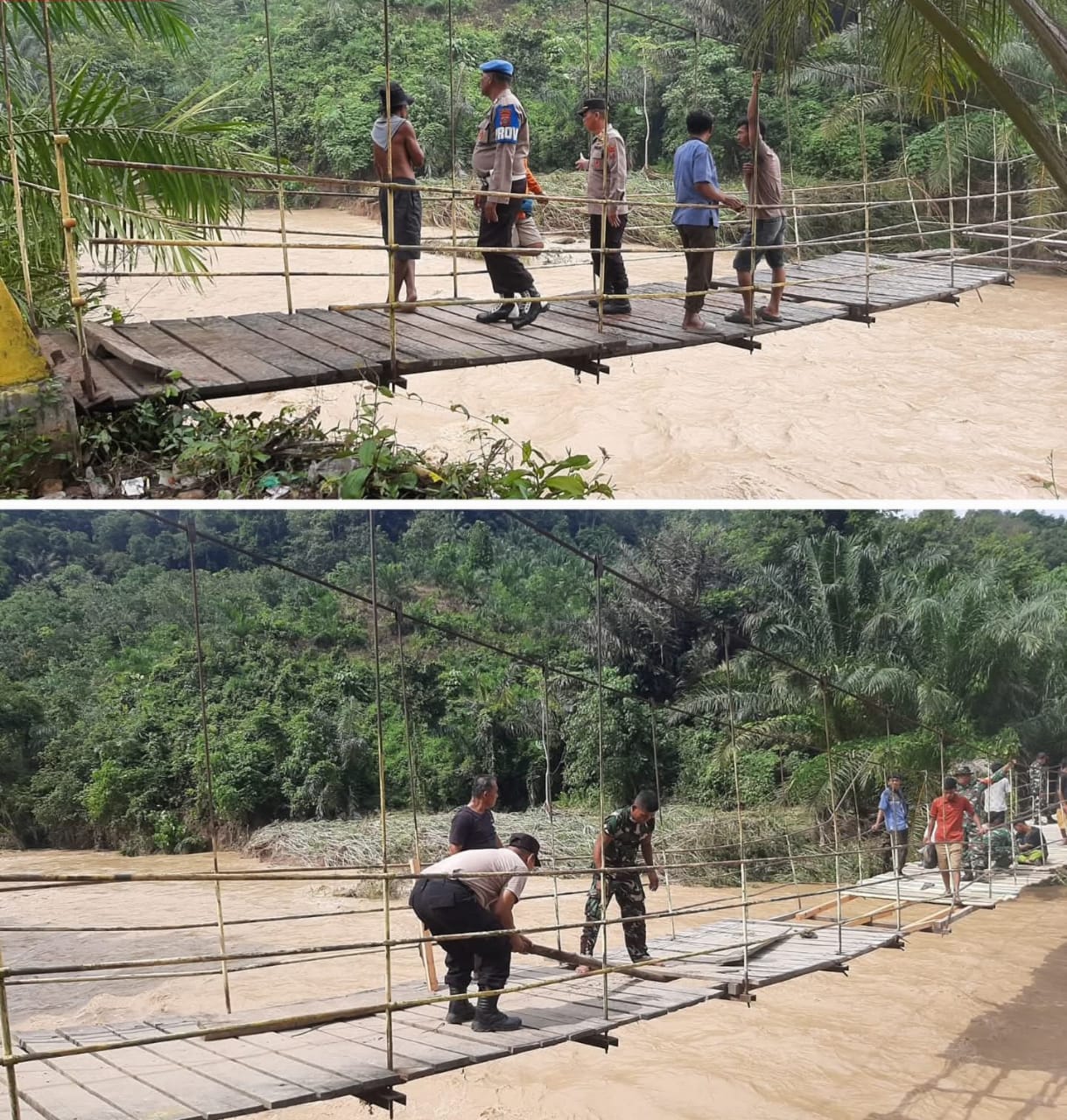 Sementara di Desa Pancur Pangko, sebagian lantai papan jembatan terlepas dan patah di bagian tengah, dan di Desa Hasambi, jembatan dilaporkan putus total.