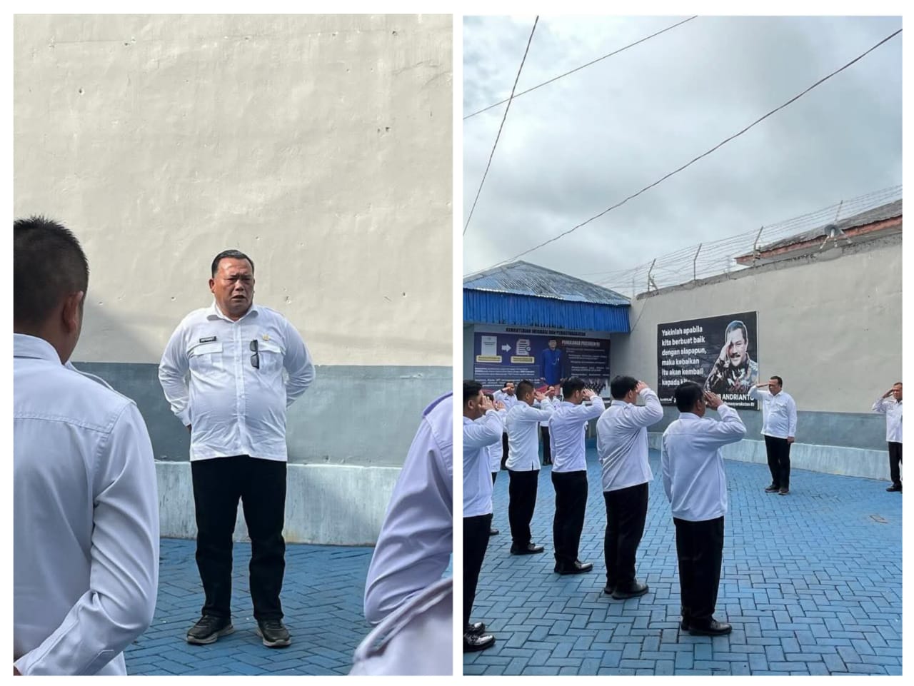 Padangsidimpuan|TribunX.id,Kepala Lembaga Pemasyarakatan (Kalapas) Kelas IIB Padangsidimpuan, Mathrios Zulhidayat Hutasoit, memimpin apel pagi bersama jajaran staff petugas Lapas di halaman apel Lapas Padangsidimpuan, Selasa (7/10/2025).