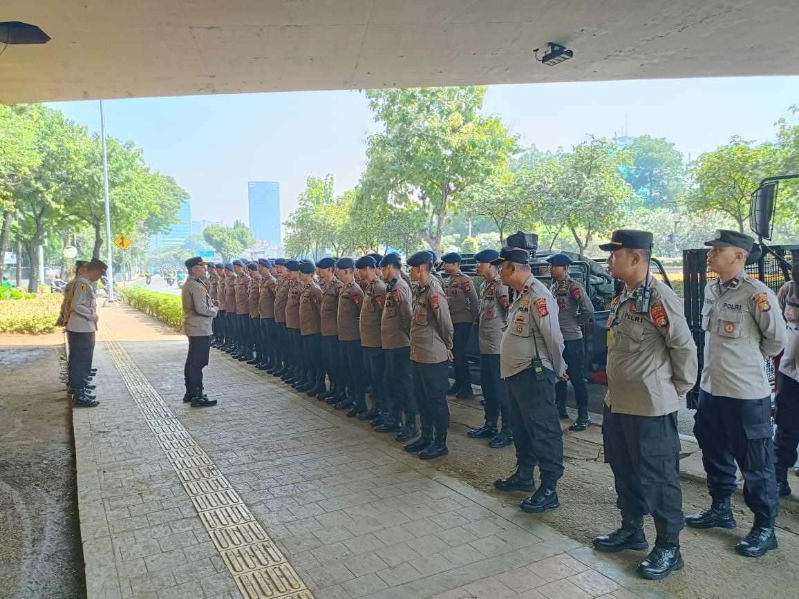 Jakarta Pusat|TribunX.id, Polres Metro Jakarta Pusat bersama jajaran menggelar apel pengamanan gabungan di Lapangan Polsek Sawah Besar, Selasa (26/8/2025). Kegiatan ini dilakukan dalam rangka penyekatan dan pengamanan aksi unjuk rasa dari Badan Eksekutif Mahasiswa (BEM) Universitas Indraprasta PGRI yang rencananya digelar di depan Gedung DPR/MPR, Tanah Abang, Jakarta Pusat.
