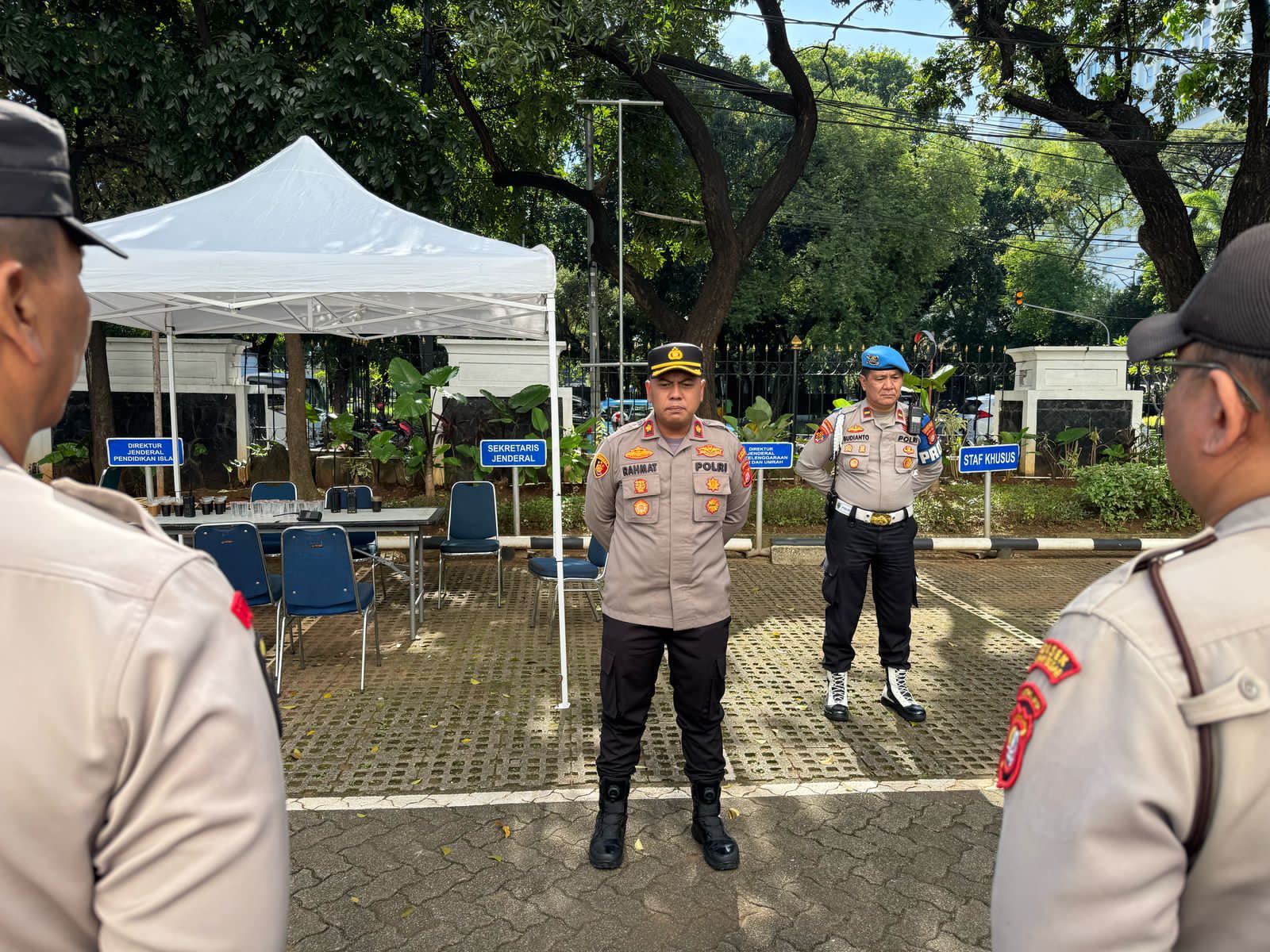 Jakarta Pusat ]]TribunX.id – Situasi di depan Kantor Kementerian Agama Republik Indonesia, Jalan Lapangan Banteng Barat, Kelurahan Pasar Baru, Kecamatan Sawah Besar, Jakarta Pusat, terlihat ramai, menjelang renacana aksi unjuk rasa yang digelar oleh kelompok massa dari “Kajian Pemuda Penegak Keadilan”. Mereka menuntut Presiden RI, Prabowo Subianto, untuk segera mencopot Menteri Agama Nazaruddin Umar dari jabatannya. Kamis (24/04)