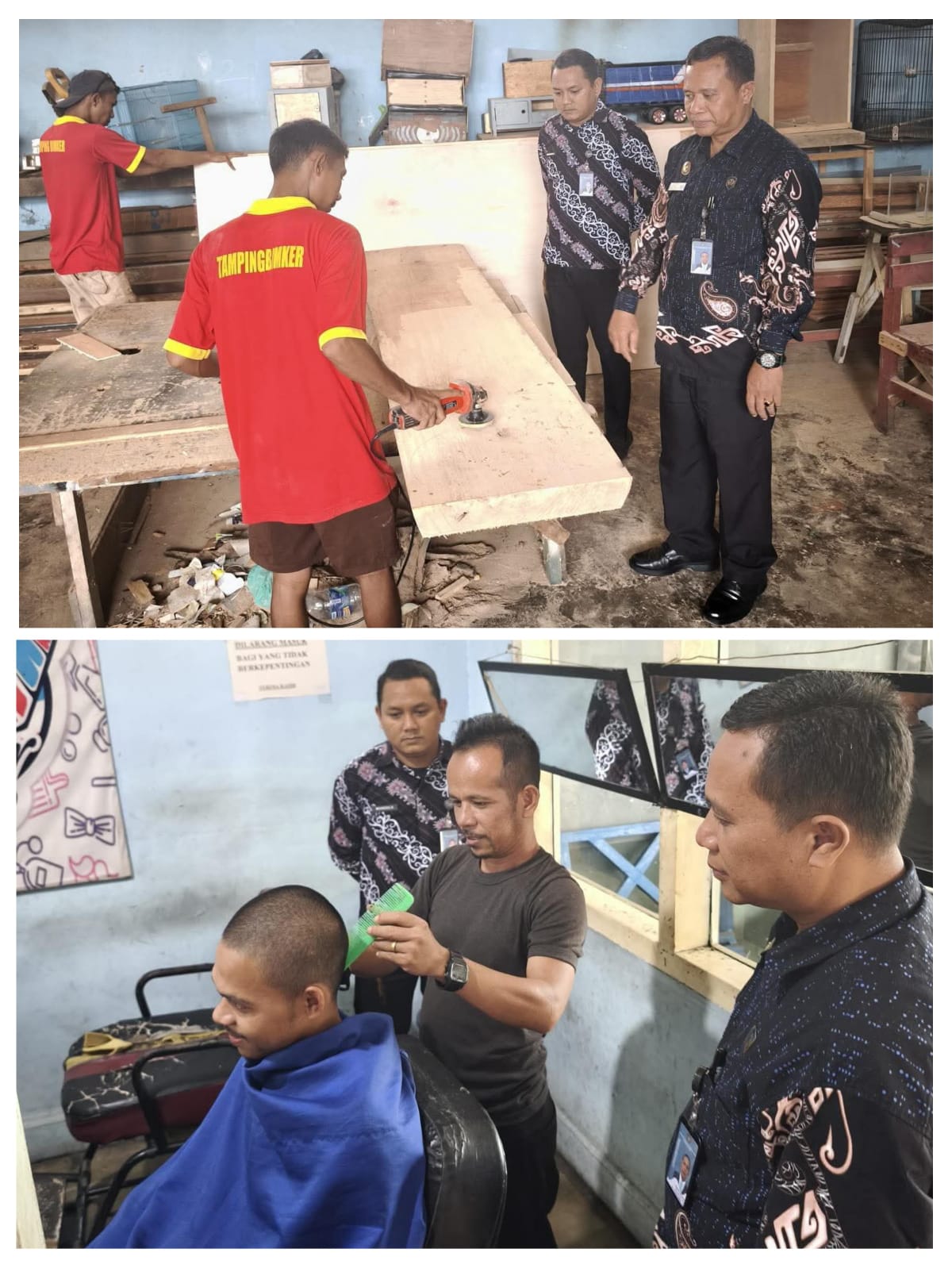 Kegiatan pemantauan meliputi ruang-ruang kerja seperti bengkel pertukangan kayu, usaha meubel, dan keterampilan pangkas. Di lokasi tersebut, Erikjen menyapa para warga binaan yang tengah menjalani pembinaan, memeriksa progres produksi, memantau kondisi alat kerja, dan mengecek kualitas hasil karya.