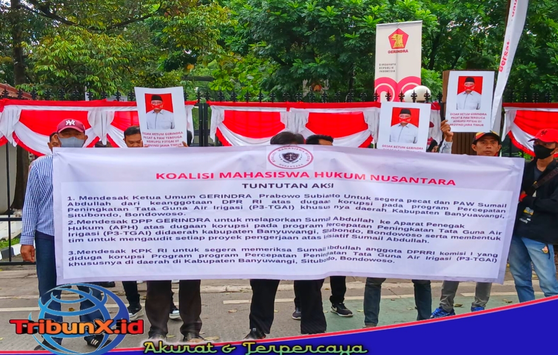1. Mendesak Ketum GERINDRA Bapak Prabowo Subianto Untuk segera pecat dan PAW Sumail Abdullah dari keanggotaan DPR RI atas dugaan korupsi pada program Percepatan Peningkatan Tata Guna Air Irigasi (P3-TGAI) khusus nya daerah Kabupaten Banyuawangi,Situbondo,Bondowoso.