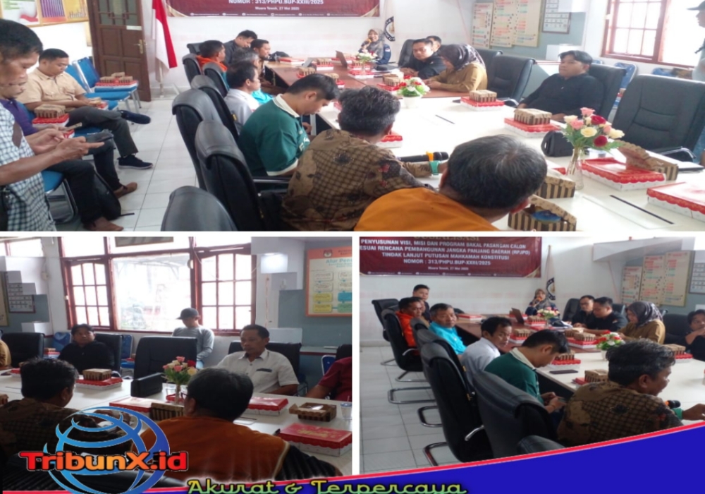 Barito Utara]]TribunX.id, Komisi Pemilihan Umum Kabupaten Barito Utara,kembali menggelar rapat koordinasi sosialisasi penyusunan visi,misi program bakal pasangan calon Bupati dan Wakil Bupati Kabupaten Barito Utara, tindak lanjut pasca putusan Mahkamah Konstitusi Republik Indonesia (MKRI), Nomor : 313/PHPU.BUP-XXIII/2025.