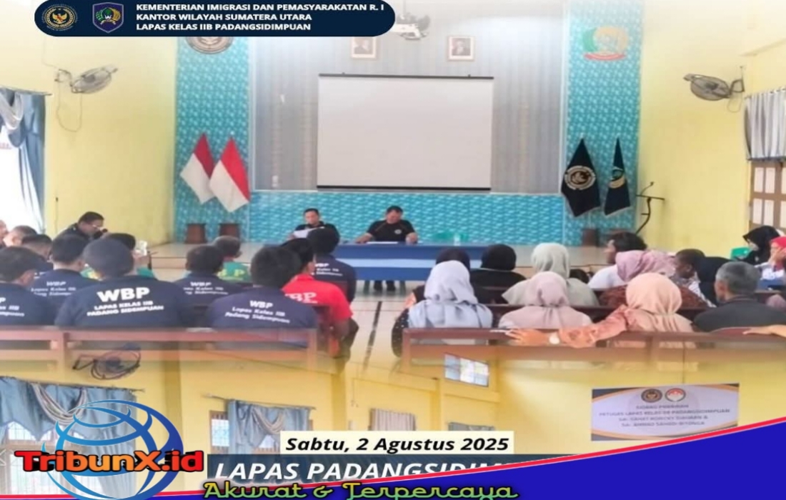 Padangsidimpuan|TribunX.id, Sebanyak 12 (dua belas) orang warga binaan Lapas Kelas IIB Padangsidimpuan tampak memenuhi ruang aula Lapas Padangsidimpuan dalam rangka pelaksanaan Sidang TPP yang dipimpin oleh Kasi Binadik & Giatja Lapas Padangsidimpuan, Erikjen Silalahi bersama Tim Pengamat Pemasyarakatan (TPP), wali pemasyarakatan dan assesor, Sabtu (02/08/2025).