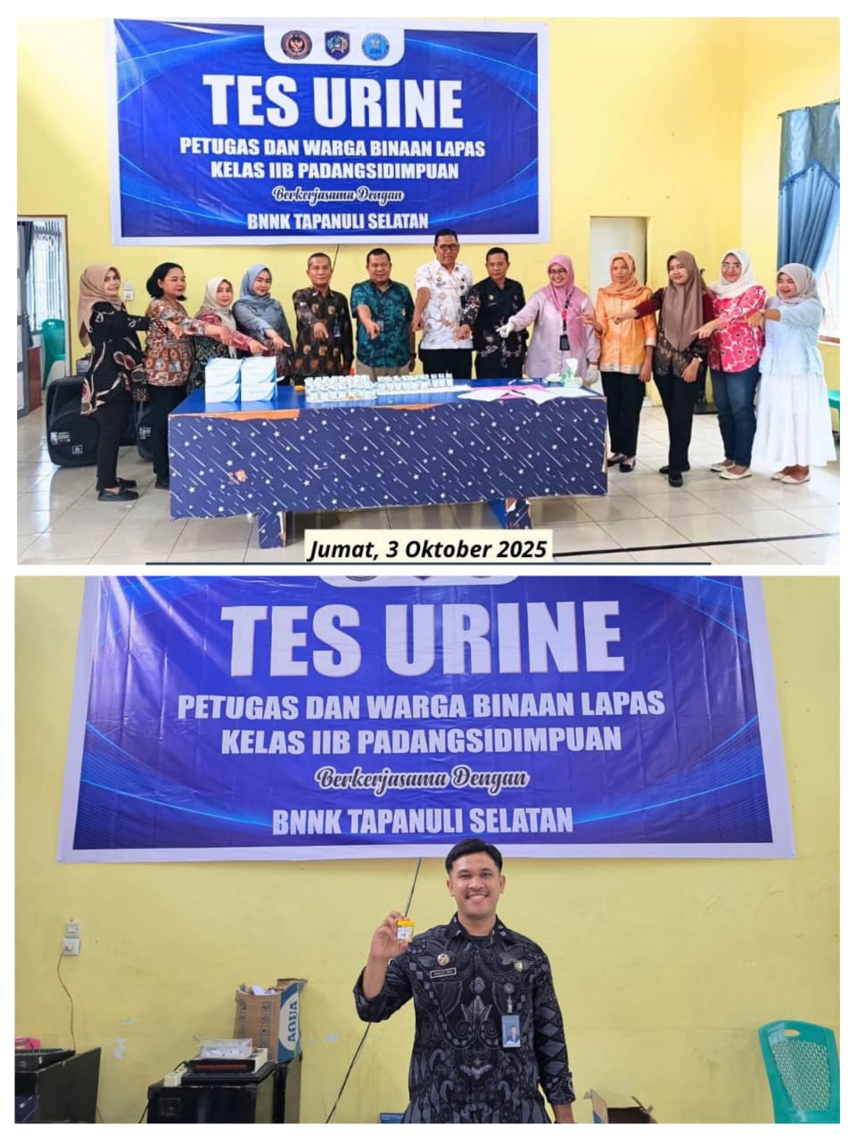 Padangsidimpuan|TribunX.id, Dalam rangka memperkuat komitmen terhadap pemberantasan narkoba dan mewujudkan lingkungan pemasyarakatan yang bersih dari penyalahgunaan narkotika, Lembaga Pemasyarakatan (Lapas) Kelas IIB Padangsidimpuan menyelenggarakan kegiatan tes urine bagi pegawai serta warga binaan. Kegiatan ini dilaksanakan bekerja sama dengan Badan Narkotika Nasional Kabupaten (BNNK) Tapanuli Selatan, Jumat (3/10/2025).