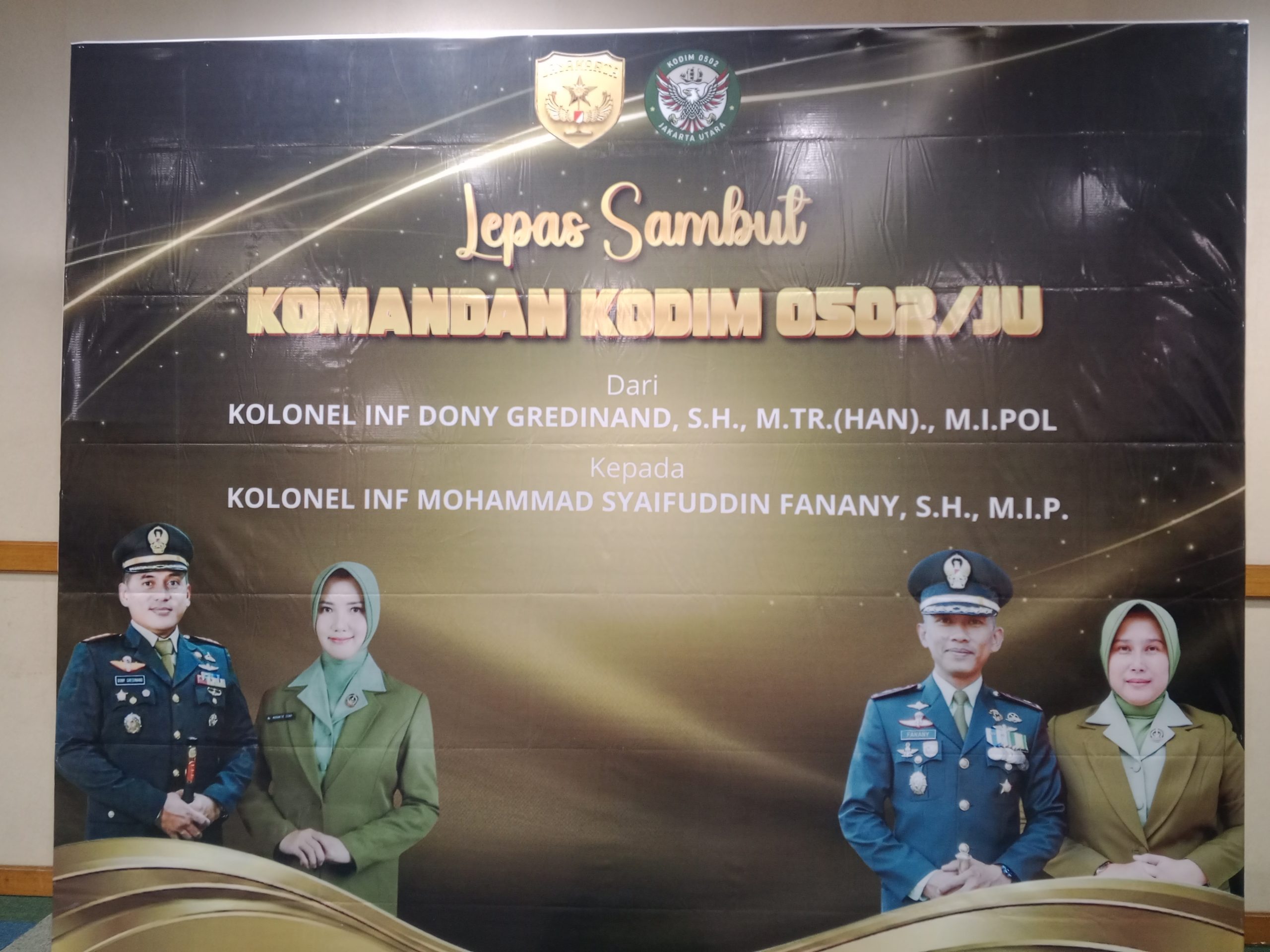 JAKARTA| TribunX.id,  Acara lepas sambut Komandan Kodim (Dandim) 0502/Jakarta Utara berlangsung khidmat dan penuh kehangatan. Kegiatan ini menandai serah terima jabatan dari Kolonel Inf Dony Gredinand, S.H., M.Tr ( Han ),,ML.Pol kepada Kolonel Inf Mohammad Syaifuddin Fanany, S.H,M.LP. Acara digelar di Ruang Bahari, Lantai 14, Gedung Wali Kota Jakarta Utara, Sabtu malam (18/4).