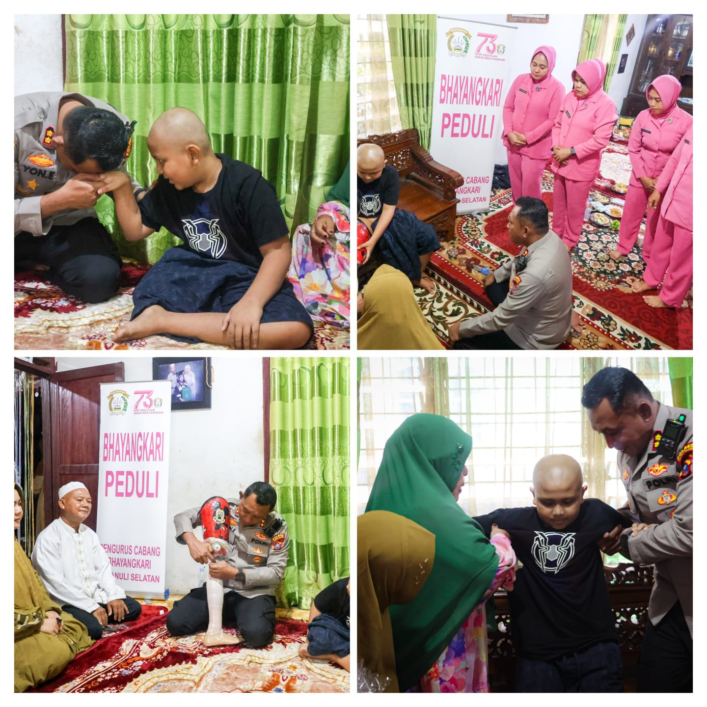 memperingati Hari Kesatuan Gerak Bhayangkari (HKGB) ke-73 tahun 2025,”Kapolres Tapsel menyerahkan bantuan kaki palsu kepada anak dari salah satu personelnya