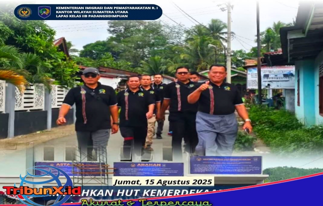 Padangsidimpuan|TribunX.id, Semarak HUT Kemerdekaan Republik Indonesia Ke-80, Kalapas Padangsidimpuan, Mathrios Zulhidayat Hutasoit Laksanakan Jalan Santai/ Fun Walk bersama dengan jajaran Lapas Padangsidimpuan bertajuk “Melangkah Bersama Untuk Indonesia Maju”. Jum’at (15/08/2025).