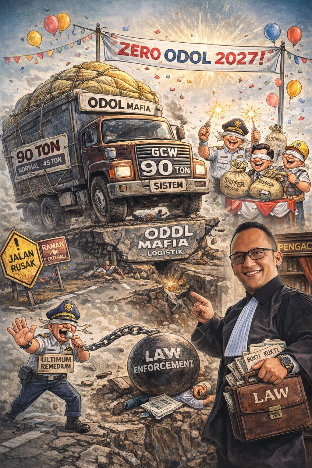 Advokat LLAJ PendahuluanKita tidak boleh terus menerus menutup mata. Fenomena Over Dimension Over Load (ODOL) hari ini tidak lagi dapat dipandang sebagai pelanggaran administratif biasa. Ia telah bertransformasi menjadi kejahatan sistemik dalam rantai logistik nasional yang merusak jalan, membebani jembatan, dan yang paling tragis, merenggut nyawa manusia.(5/4/2026)