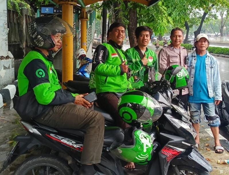 Brigadir P. Siahaan berdialog santai dengan para pengemudi ojol, menyampaikan pesan-pesan keamanan serta mengajak mereka untuk bersama-sama mengantisipasi potensi tindak kejahatan seperti pencurian dengan kekerasan (curas), pencurian dengan pemberatan (curat), dan pencurian kendaraan bermotor (curanmor).