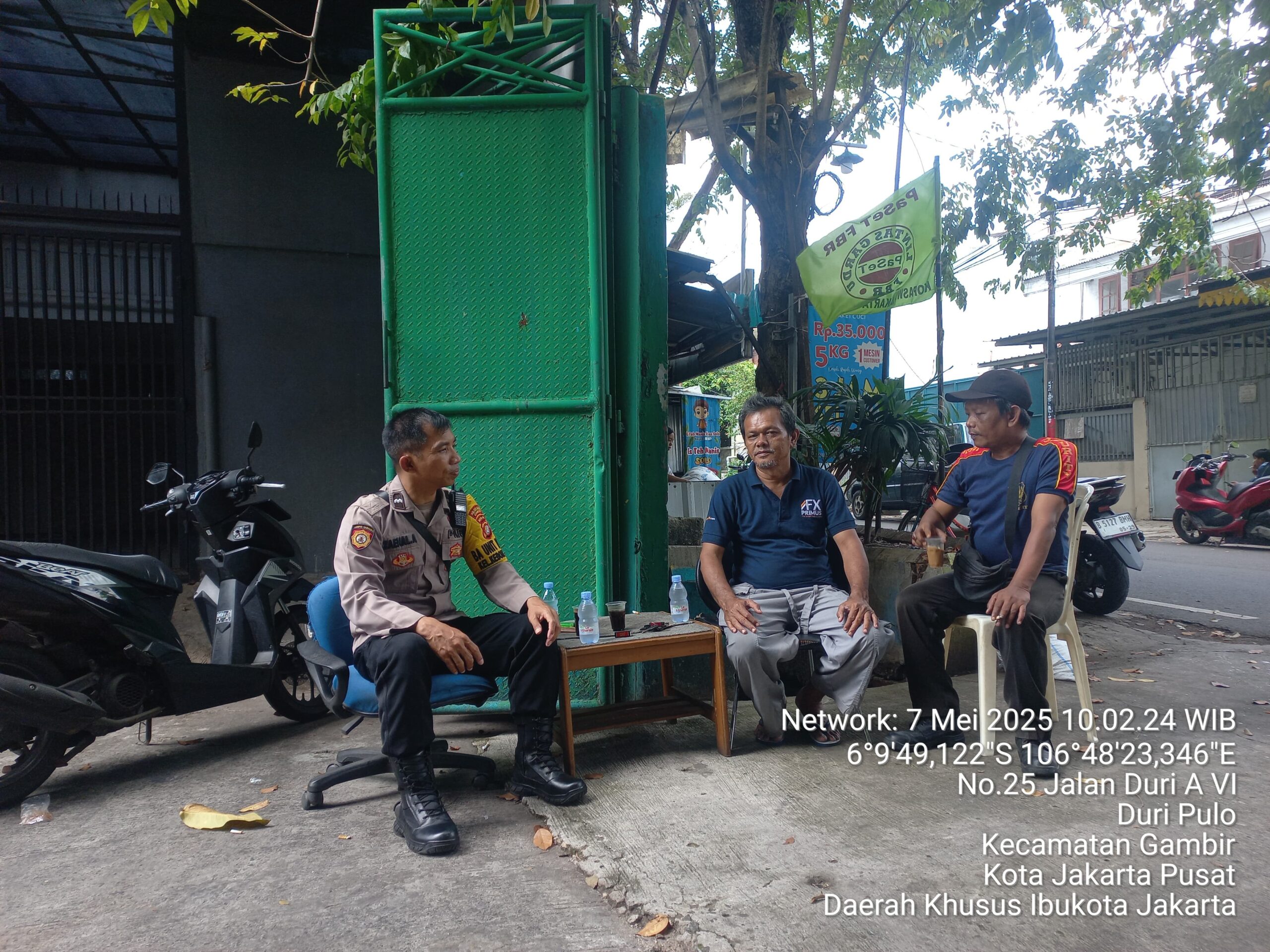 Jakarta Pusat]]TribunX.id – Dalam upaya menjaga keamanan dan ketertiban masyarakat (Kamtibmas), anggota Polsubsektor Roxy Polsek Metro Gambir, Aipda Zaenal Arifin, melaksanakan kegiatan sambang dan patroli kewilayahan pada Sabtu, 10 Mei 2025. Patroli dilakukan di kawasan Jl. Cibunar RW 02, Kelurahan Duripulo, Kecamatan Gambir, Jakarta Pusat.