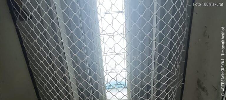 Pemasangan jaring pengaman di rusun nawa Marunda yang tak memiliki sistem secara jelas.*