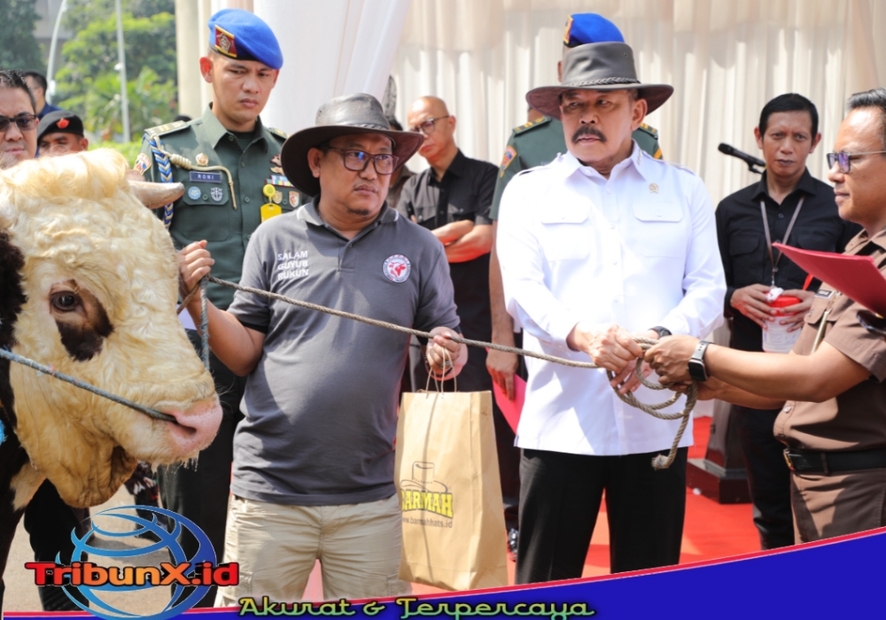 JAKARTA]]TribunX.id, Dalam menyambut Hari Raya Idul Adha 1446 Hijriah, Jaksa Agung ST Burhanuddin melaksanakan kegiatan penyerahan simbolis hewan qurban kepada panitia pelaksana di lingkungan Kejaksaan Agung pada Kamis 5 Juni 2025 di Halaman Gedung Utama Kejaksaan Agung, Jakarta. Kegiatan ini menjadi wujud nyata solidaritas, keikhlasan, dan kepedulian sosial insan Adhyaksa kepada sesama.