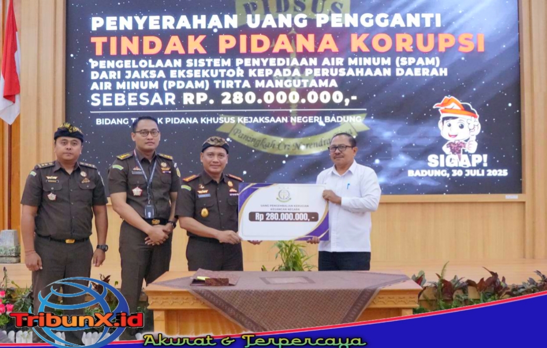 BALI|TribunX.id, Rabu tangal 30 Juli 2025, bertempat di Aula Kantor Kejaksaan Negeri Badung Bali yang berada di Jalan Jaksa Agung R. Soeprapto No. 5 Badung Bali, telah dilakukan penyerahan uang pengganti kerugian negara dalam perkara tindak pidana korupsi atas nama terpidana I Wayan Mardiana ke Perumda Air Minum Tirta Mangutama Kabupaten Badung sesuai putusan Pengadilan Tindak Pidana Korupsi.
