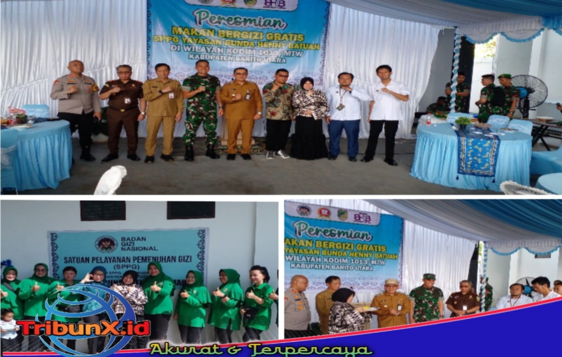 Barito Utara|TribunX.id, Program Makan Bergizi Gratis (MBG) Sekolah Penggerak Pangan Gizi (SPPG) Yayasan Bunda Henny Batuah resmi diluncurkan di wilayah Kodim 1013 Muara Teweh, Senin (22/09/2025).
