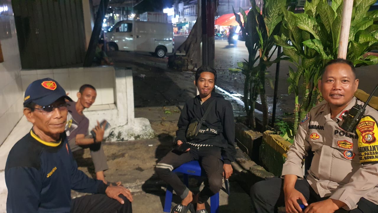 Jakarta Pusat ]]TribunX.id –Bhabinkamtibmas Kelurahan Pasar Baru, Aipda Bambang S, melaksanakan kegiatan sambang Pos Satkamling di kawasan Jl. Krekot Bunder Raya, RW 006, Kelurahan Pasar Baru, Kecamatan Sawah Besar, Jakarta Pusat. Kamis (8/5) 02.00 Wib