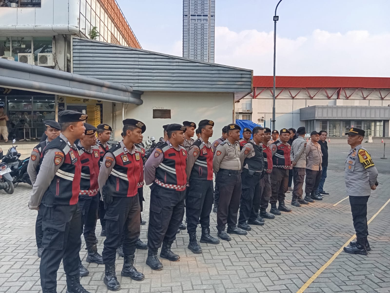 Jakarta Pusat|TribunX.id, Kepolisian Resor Metro Jakarta Pusat bersama Polsek Kemayoran melaksanakan apel pengamanan dalam rangka hari terakhir konser Lalala Fest 2025 di JIExpo Kemayoran, Minggu (24/8/2025).