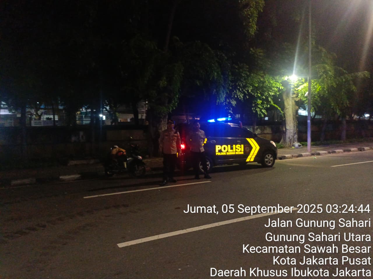 Jakarta Pusat|TribunX.id, Polsek Sawah Besar bergerak cepat menindaklanjuti laporan masyarakat yang masuk melalui layanan darurat 110 pada Jumat (5/9/2025) dini hari. Aduan tersebut terkait aktivitas balap liar dan potensi gangguan keamanan di kawasan Jalan Teluk Pintu Besi hingga Jalan Gunung Sahari Raya, Jakarta Pusat.