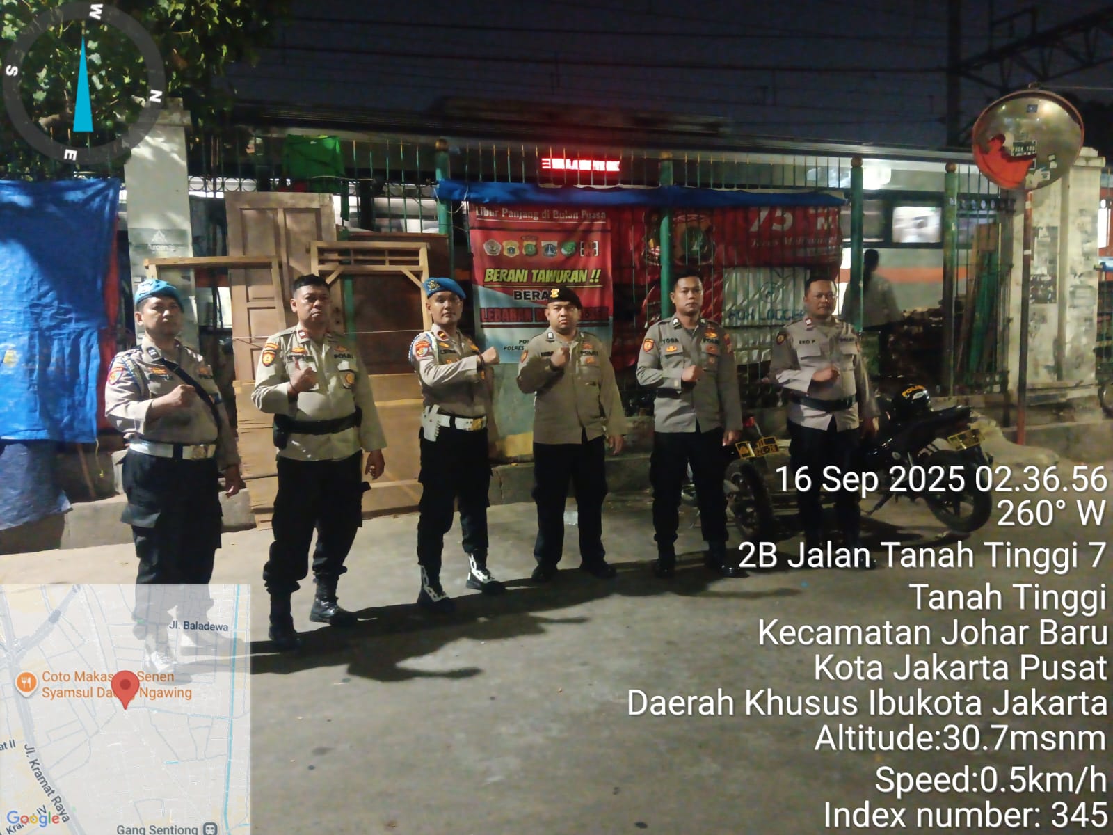 Jakarta Pusat|TribunX.id, Jajaran Polsek Johar Baru menggelar Patroli Cipta Kondisi Mobile untuk mengantisipasi potensi gangguan kamtibmas di wilayah hukum Johar Baru, Selasa (16/9/2025) dini hari. Kegiatan dimulai pukul 02.20 WIB dengan melibatkan 15 personel dipimpin Padal 201, Ipda Cornelius Sitorus (Kanit Propam).