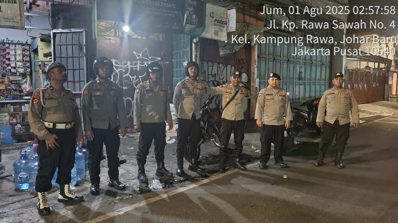 Jakarta Pusat |TribunX.id, Dalam rangka menjaga stabilitas keamanan dan ketertiban masyarakat (kamtibmas), Polsek Johar Baru melaksanakan kegiatan Patroli Cipta Kondisi pada Jumat dini hari, 1 Agustus 2025, pukul 02.20 WIB hingga pukul 04.00 WIB, dengan menyisir sejumlah titik rawan di wilayah hukumnya.