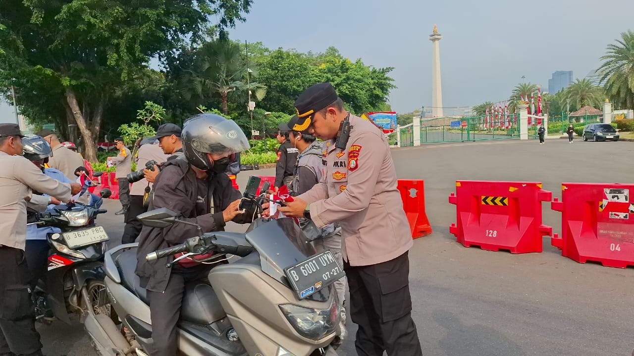 Kegiatan dipimpin langsung oleh Kapolsek Metro Gambir Kompol Rezeki R. Respati, S.H., S.I.K., M.Si., bersama P.S. Kanit Binmas Iptu Supadi dan para bhabinkamtibmas. Sebanyak 50 lembar bendera dibagikan kepada para pengguna jalan di traffic light Medan Merdeka Selatan.