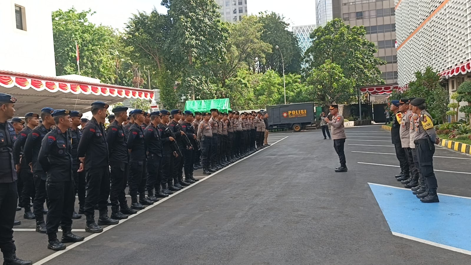 Jakarta Pusat|TribunX.id, Polsek Metro Menteng menggelar apel pengamanan menjelang aksi unjuk rasa (unras) yang direncanakan akan berlangsung di kawasan Patung Kuda Monas, Jakarta Pusat, Kamis (4/9/2025). Apel kesiapan ini dipusatkan di halaman Kantor Bawaslu RI, Jalan MH Thamrin No.14, Menteng, Jakarta Pusat, mengingat lokasi tersebut menjadi salah satu titik kumpul massa aksi.