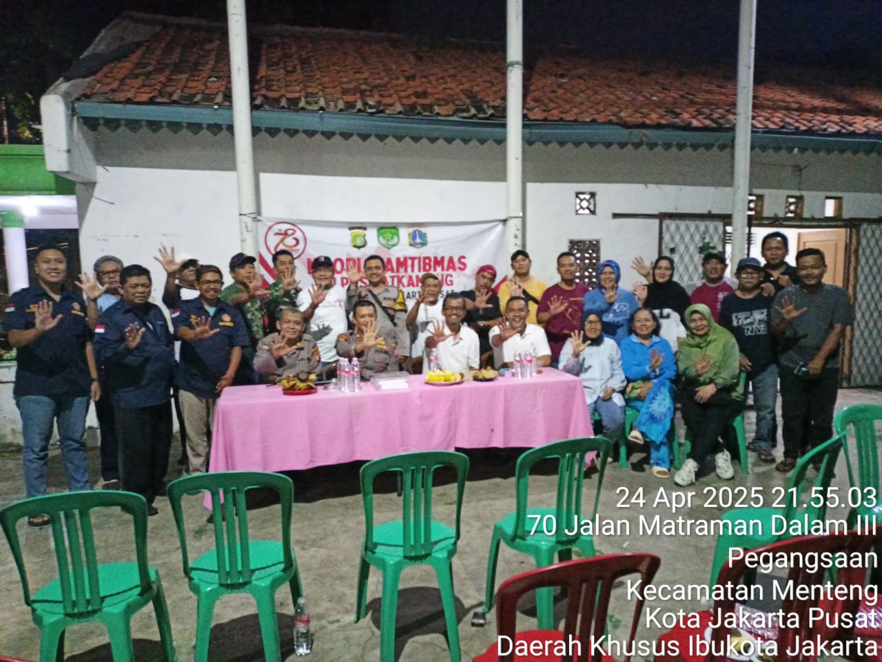 Kegiatan yang berlangsung dalam suasana santai dan penuh keakraban tersebut dihadiri langsung oleh Wakapolsek Metro Menteng, Kompol II Sutasman, yang didampingi oleh Kanit Binmas Polsek Menteng, AKP Irawan Junaedi. Turut hadir dalam kegiatan ini unsur Tiga Pilar Polsek Metro Menteng, yaitu Bhabinkamtibmas Kelurahan Pegangsaan Aipda H. M. Adhy. M. N, Babinsa Pegangsaan Koptu Muhidin, dan Kasipem Pegangsaan Bapak Ibnu.