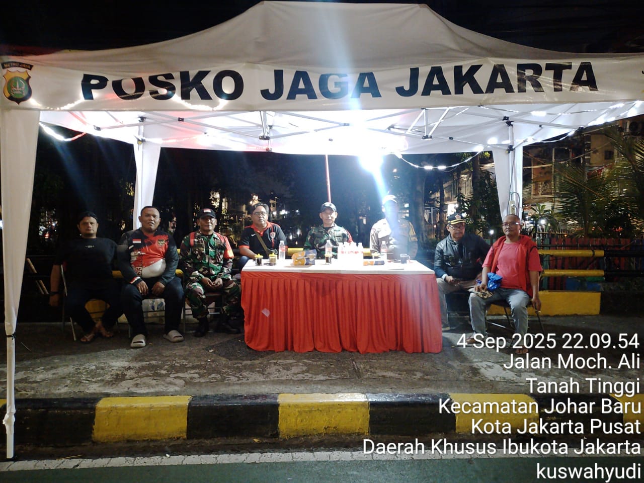Jakarta Pusat|TribunX.id, Kolaborasi tiga pilar bersama masyarakat kembali diperkuat melalui kegiatan Posko Jaga Jakarta di Kecamatan Johar Baru. Pada Kamis malam (4/9/2025) pukul 20.00 WIB, jajaran Polsek Johar Baru bersama TNI, Satpol PP, serta tokoh masyarakat menggelar konsolidasi keamanan di Posko Jaga Jakarta, Jembatan Pom Bensin Galur, Jalan Letjen Suprapto, Kelurahan Galur.