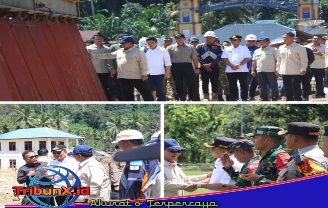 Tapanuli Selatan|TribunX.id, Presiden Republik Indonesia Prabowo Subianto meninjau langsung progres pembangunan Jembatan Bailey Sungai Garoga di Desa Garoga, Kecamatan Batang Toru, Kabupaten Tapanuli Selatan, Sumatera Utara, Rabu (31/12/2025). Jembatan darurat tersebut dibangun sebagai solusi cepat setelah jembatan utama terputus akibat bencana banjir bandang yang melanda wilayah itu.
