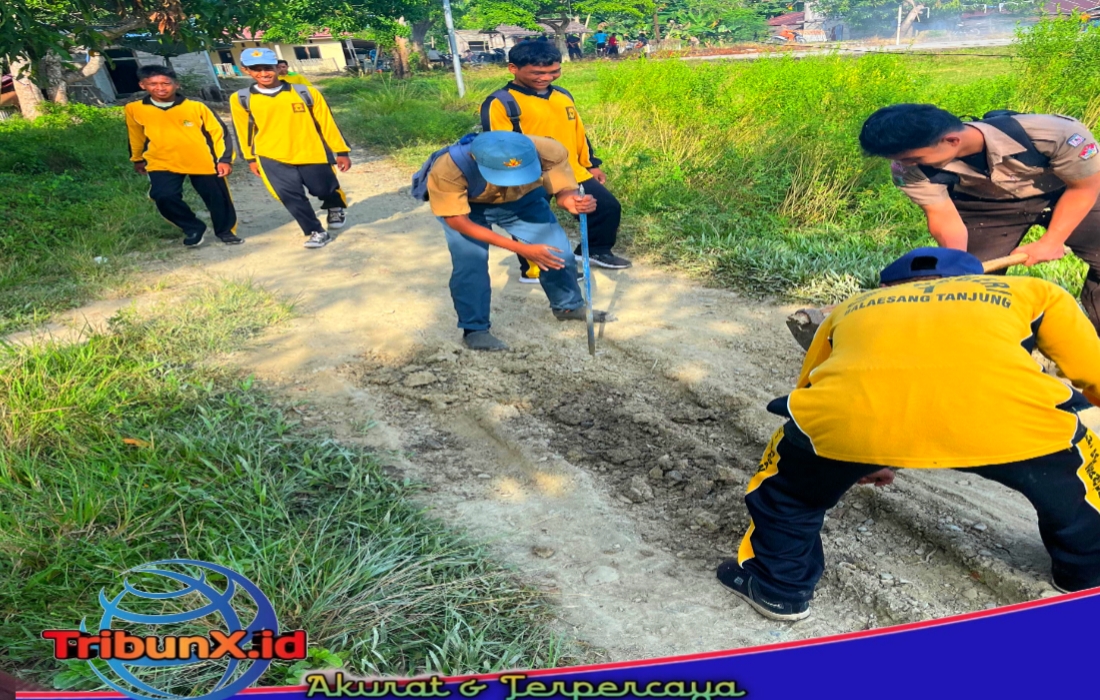 Donggala|TribunX.id, Kegiatan penimbunan permukaan jalan menuju gerbang SMAN 1 Balaesang Tanjung dilakukan oleh puluhan murid didampingi oleh beberapa orang guru SMA Negeri 1 Balaesang Tanjung pada jum’at, 25 Juli 2025.