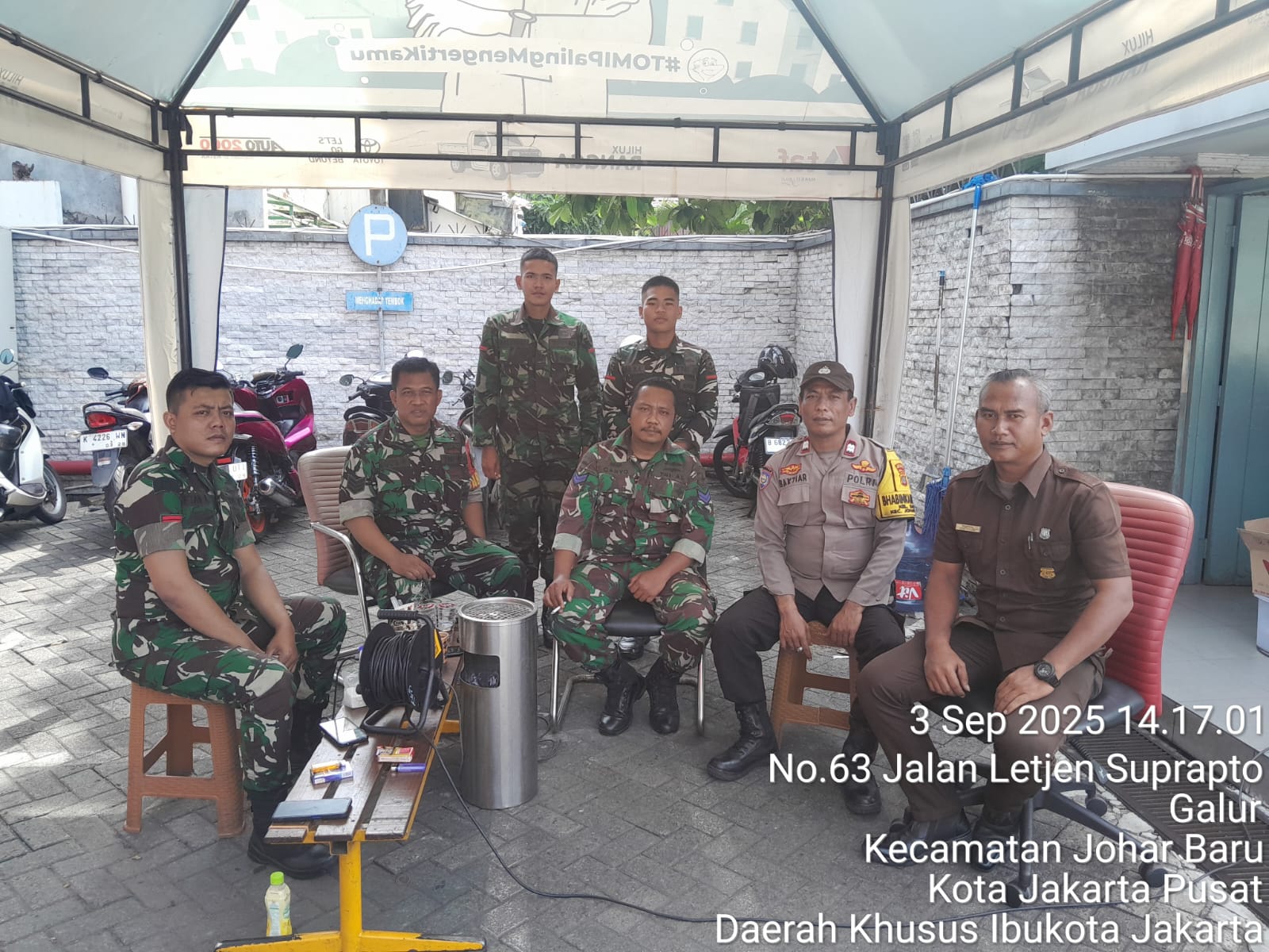 Dalam kegiatan ini, Aiptu Baktiar bersama Bhabinsa Galur Serka Agus bertemu dengan Rizal selaku security Shorum Toyota Auto 2000. Turut hadir pula anggota BKO dari Kodam Jaya yang dipimpin Pratu Fahmi serta personel TNI AL yang dipimpin Sertu Cahyo, yang sejak 29 Agustus 2025 telah ditugaskan membantu pengamanan di wilayah tersebut.