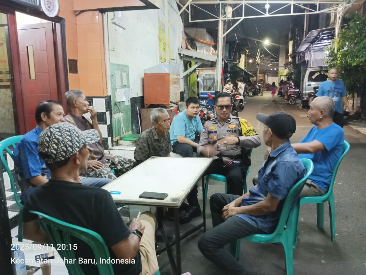 Jakarta Pusat|TribunX.id, Bhabinkamtibmas Kelurahan Kampung Rawa Aipda Ikhwan melaksanakan kegiatan cooling system, patroli wilayah, dan door to door sambang di RW 01, Jl. Rawa Sawah 3 RT 01 RW 01, Kelurahan Kampung Rawa, Kecamatan Johar Baru, Jakarta Pusat. Pada Kamis (11/9/2025) pukul 20.00 WIB.