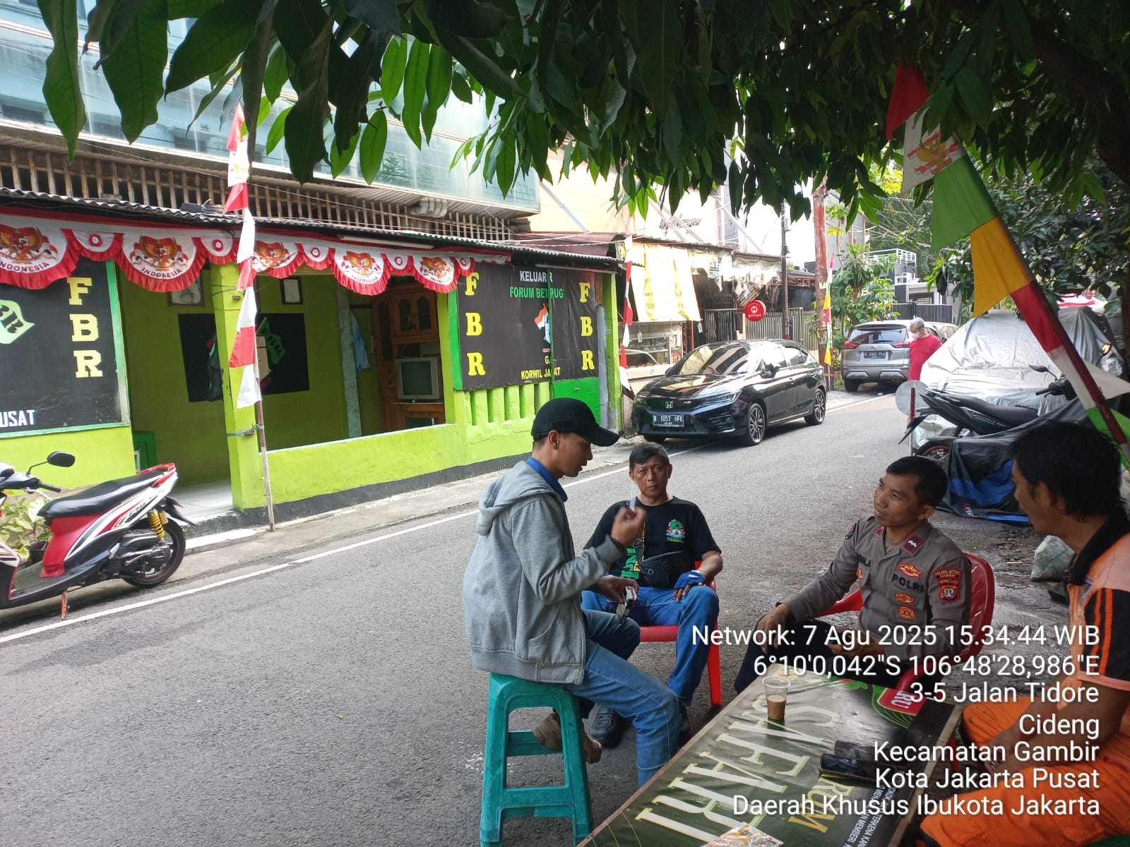 Jakarta Pusat |TribunX.id, Upaya preventif terus dilakukan jajaran Polsek Metro Gambir untuk menekan angka kriminalitas di wilayahnya. Pada Kamis, 7 Agustus 2025, anggota Polsubsektor Roxy, Aipda Zaenal Arifin, melakukan patroli sambang ke Gardu Forum Betawi Rempug (FBR) G0345 yang berlokasi di Jalan Tidore, RW 5, Kelurahan Cideng, Kecamatan Gambir, Jakarta Pusat.