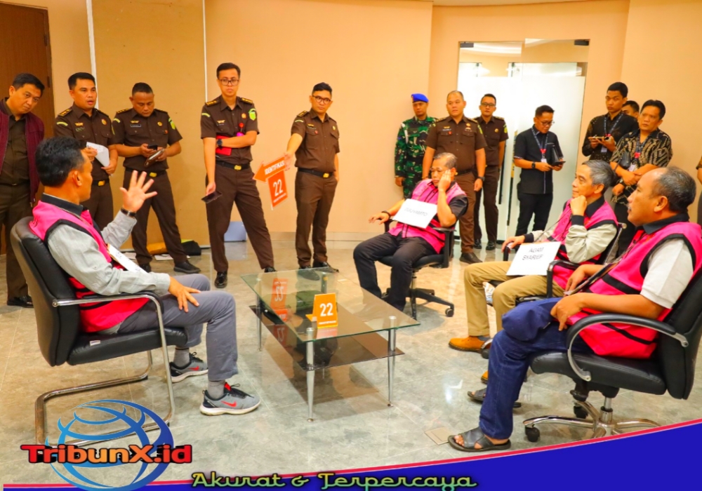 JAKARTA]]TribunX.id, Senin 28 April 2025, Kejaksaan Agung melalui Tim Jaksa Penyidik pada Direktorat Penyidikan Jaksa Agung Muda Bidang Tindak Pidana Khusus (JAM PIDSUS) telah melakukan gelar rekonstruksi terhadap Tersangka MS, Tersangka AR, Tersangka WG, Tersangka MAN, Tersangka ABS, Tersangka AM, Tersangka DJU dan Tersangka MSY.