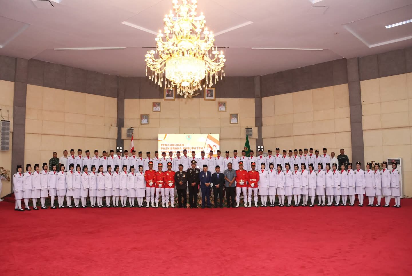 Pengukuhan berlangsung di Gedung Serba Guna Sarasi, Komplek Perkantoran Pemerintah Tapsel, Jalan Prof. Lafran Pane, Sipirok, Jumat (15/8/2025). Dari 68 anggota Paskibra, 35 di antaranya laki-laki dan 33 perempuan, yang berasal dari berbagai sekolah di wilayah Tapsel.